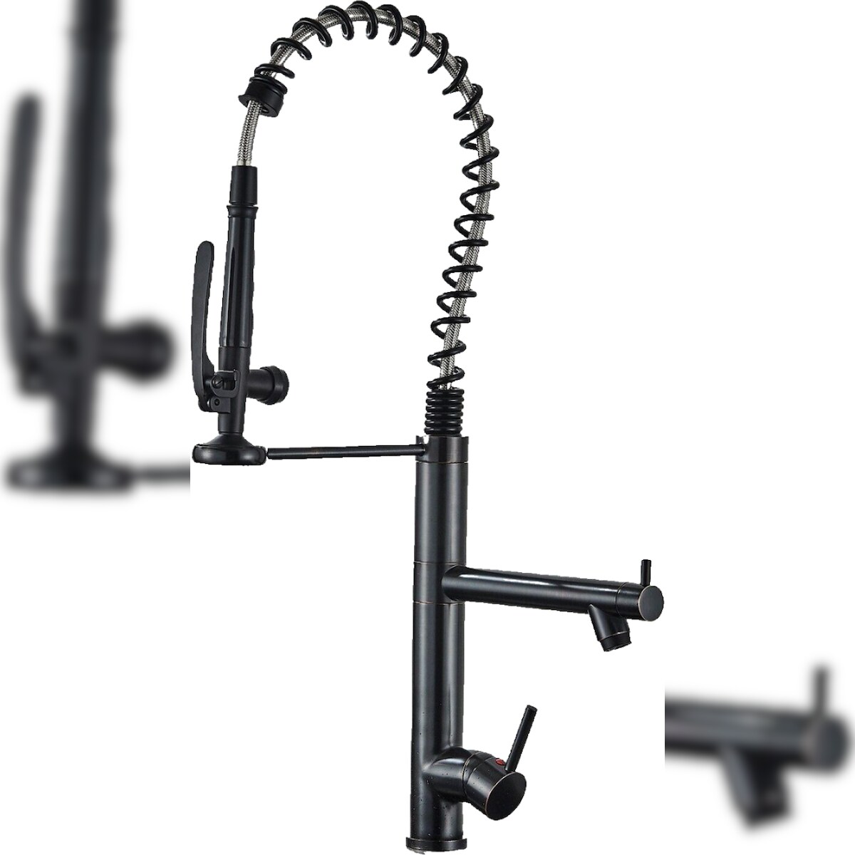 KLARWERK® Ben | Große Gastronomie Küchenarmatur Schwarz mit 2 Brausen | Profi Edelstahl Wasserhahn Küche 2 Anschlüsse | Doppelspülbecken Restaurant