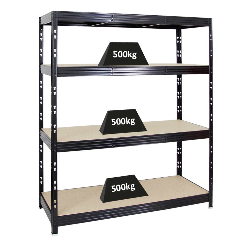 Proregal Mega Deal | 4x Profi Schwerlastregal Rhino | HxBxT 180x240x60cm | 4 Spanplatten-Ebenen 8mm | Fachlast 450kg | Schwarz