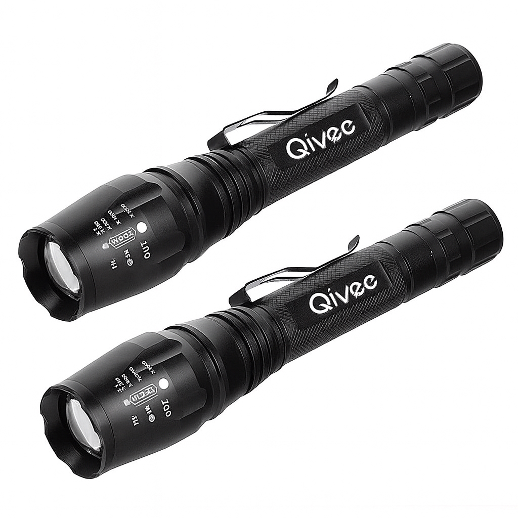 Qivee 2x Starke LED Polizei Swat Taschenlampe wiederaufladbar Zoom