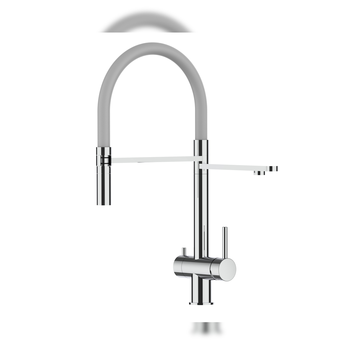 Vizio 3 Wege Wasserhahn Küchenarmatur Spültischmischer, Edelstahl Massiv, 360° schwenkbarem Grau Auslauf, abnehmbare 2 strahl Handbrause, Poliert