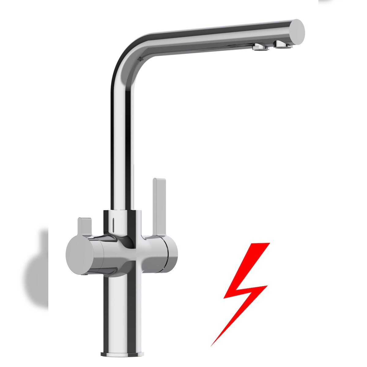 Vizio Niederdruck 3 Wege Wasserhahn Küchenarmatur Spültischmischer FC, Verchromt mit 360° schwenkbarem L-Auslauf