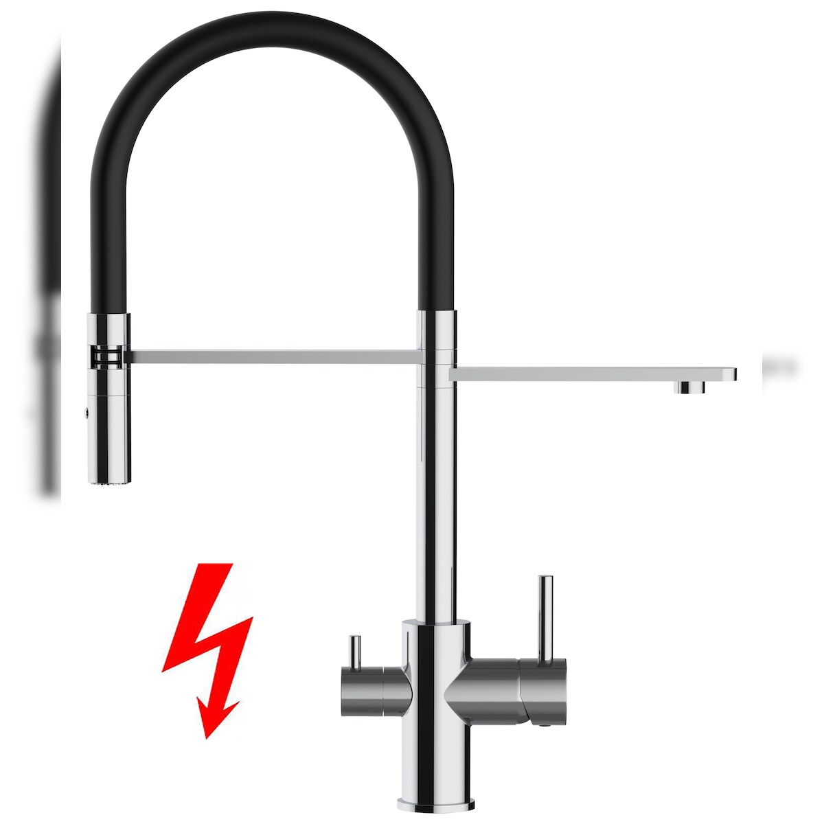 Vizio Niederdruck 3 Wege Wasserhahn Küchenarmatur Spültischmischer FL, Verchromt, mit 360° schwenkbarem Schwarz Auslauf und abnehmbare 2 strahl Handbrause
