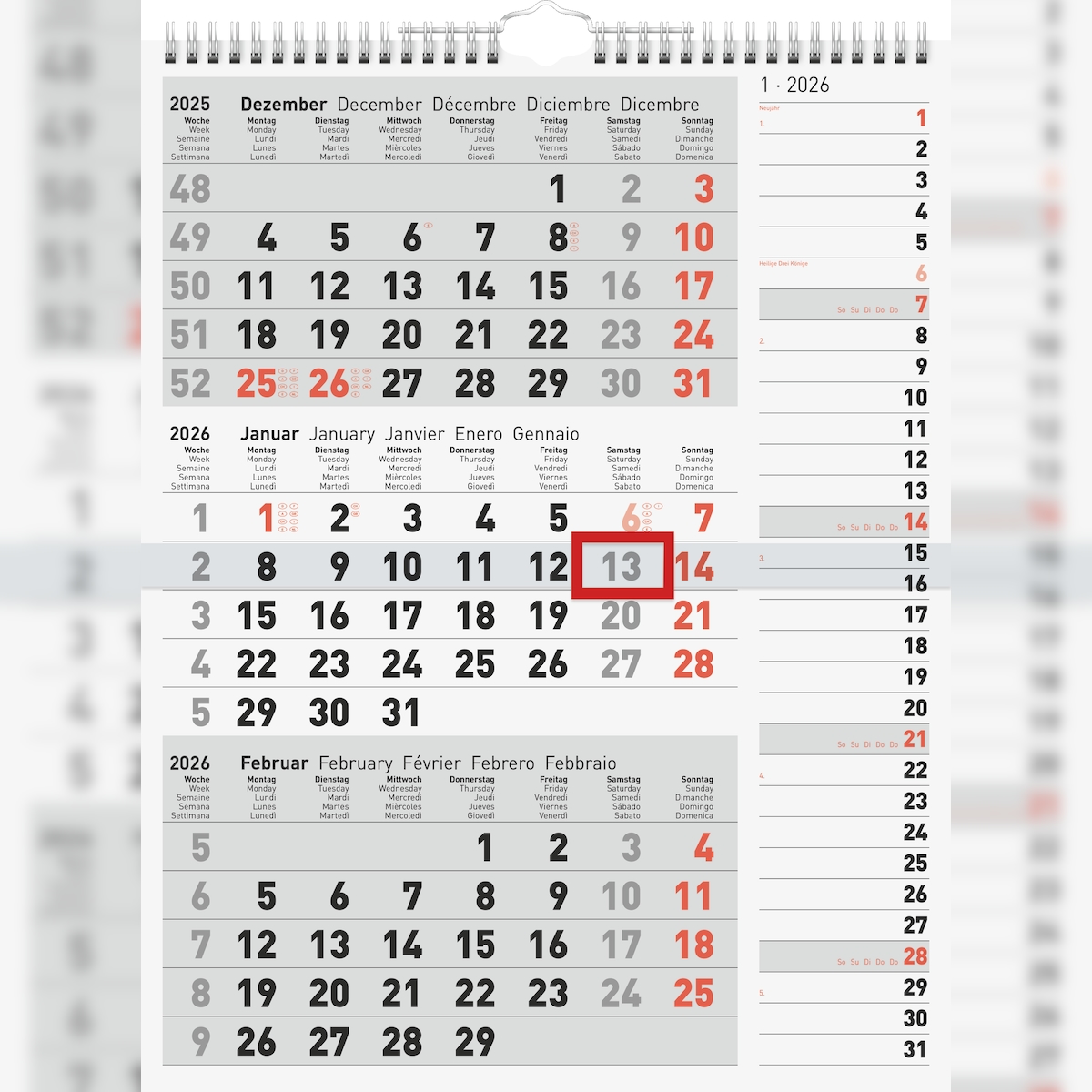 2026 Rido 3-Monatskalender grau 300×390 mm