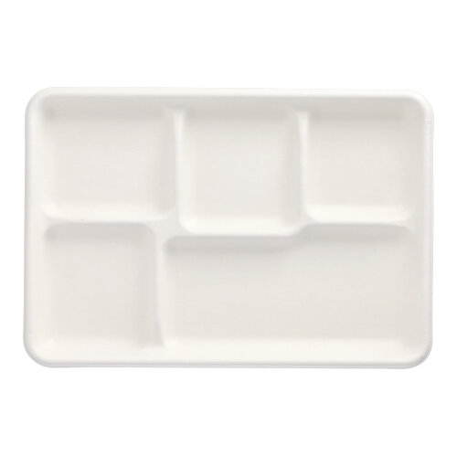 Papstar 125 Menü-Trays, Zuckerrohr "pure" 5-geteilt 2,4 cm x 21,6 cm x 31,7 cm weiss