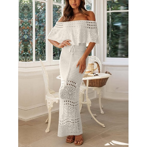 Per donna Abito maxi Tubino Casual All'aperto Uscire Taglia piccola Tinta unica Mezza Manica Senza Spalle Nero Bianco Albicocca Estate Primavera Autunno