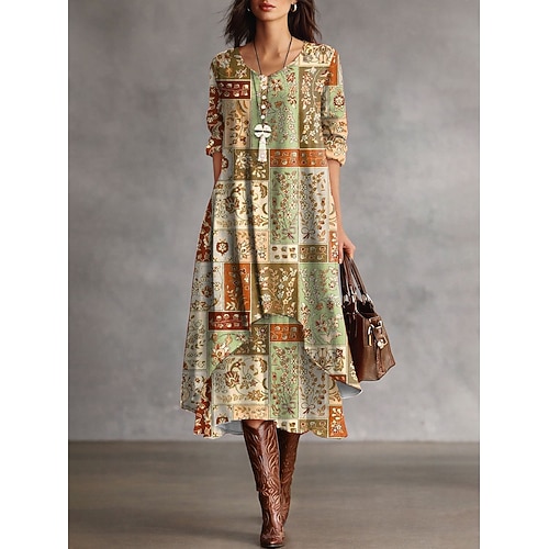 Per donna Abito Midi Tubino Abito a trapezio Vacanza Casual Boho Quotidiano Ferie Plaid Manica Lunga Dolcevita Verde scuro blu navy Marrone