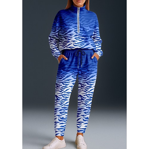 Per donna Maglia Tuta da Ginnastica Tuta da 2 pezzi Coulisse Tasca Geometrico Set di Abbigliamento Sportivo Completo Abbigliamento Autunno Inverno Blu Lavoro All'aperto Viaggio Leggero Di tendenza