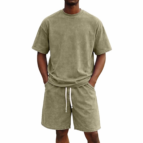 Per uomo Tuta Set pantaloncini e T-shirt Set tinta unita in cotone casual Manica Corta Girocollo Estate Tinta unica Ginnastica Casual 2 Pezzi Vintage ▾ Casuale Vacanza Abbigliamento quotidiano