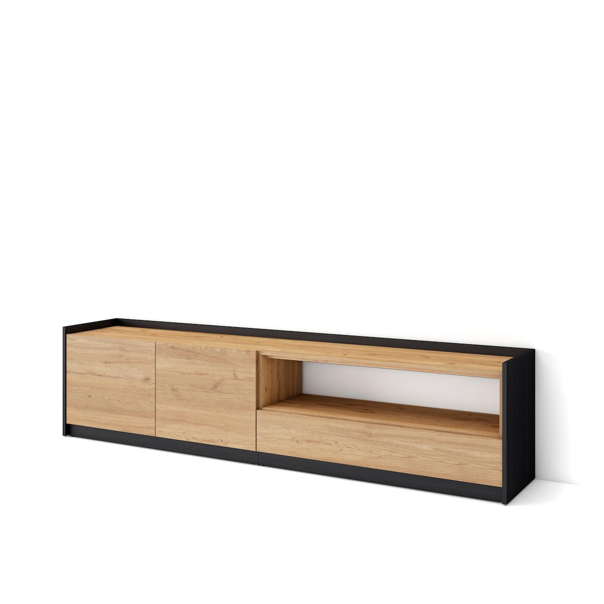SKRAUT HOME Wohnzimmer-TV-Schrank, Viel Stauraum, 200x35x45cm, Für TV-Geräte bis zu 80“, Wohnzimmermöbel, Moderner Stil, Schwarz _ 48_17