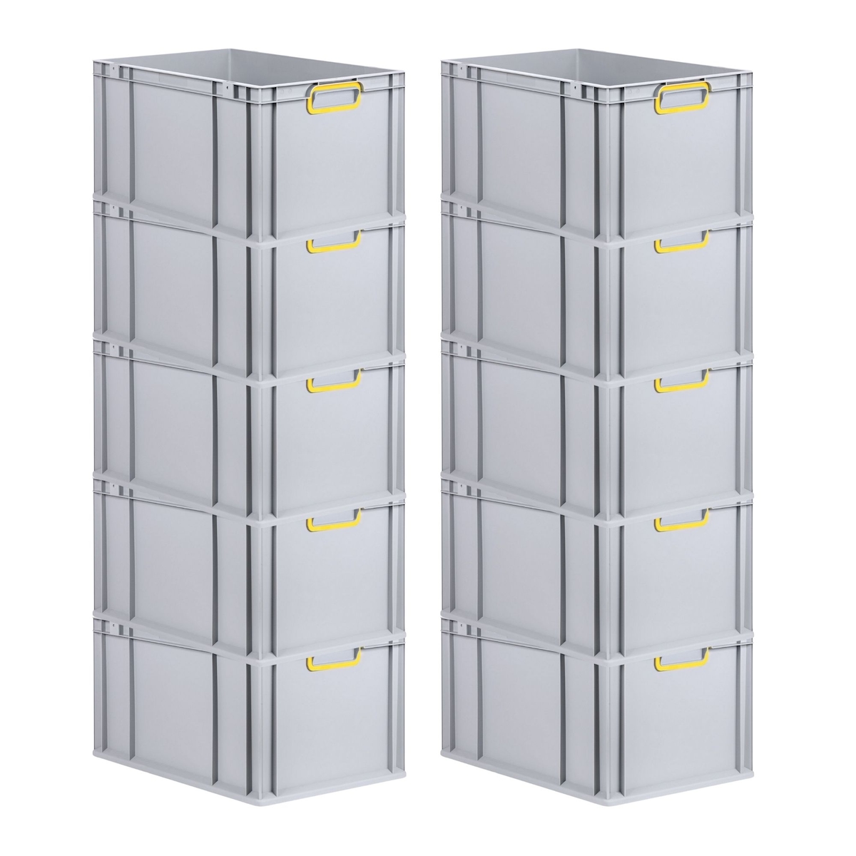 PROREGAL 10x Eurobox NextGen Color | HxBxT 22x40x60cm | 65 Liter | Griffe gelb geschlossen | Verstärkter Boden | Eurobehälter