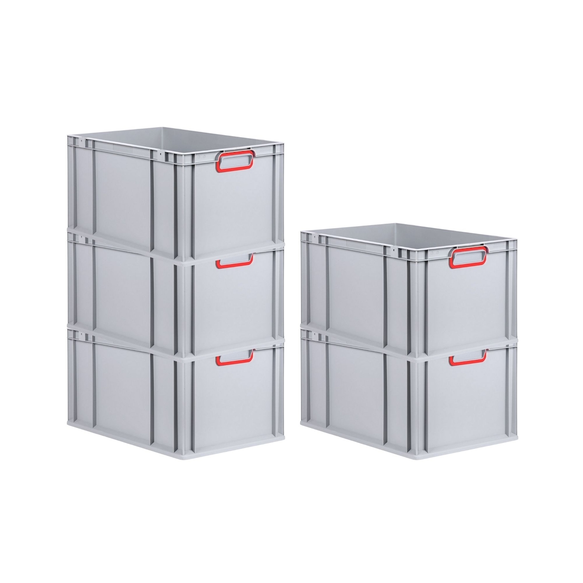 PROREGAL 5x Eurobox NextGen Color | HxBxT 22x40x60cm | 65 Liter | Griffe rot geschlossen | Verstärkter Boden | Eurobehälter