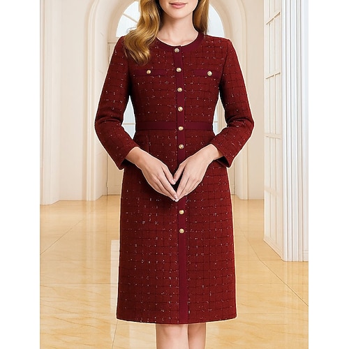 Tubino Colonna Lunghezza al ginocchio Vestito da Festa Abito da Cocktail Abito da invitata a nozze Abito da cerimonia per signora Manica Lunga Mezza Manica Girocollo Elegante Cocktail Derby del