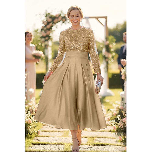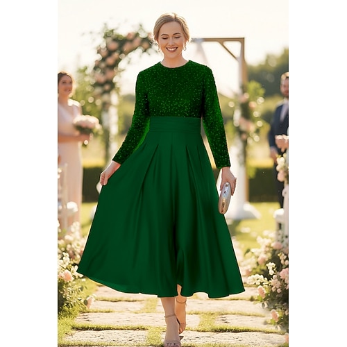 Linea ad A Lunghezza alla caviglia Lunghezza Tè Vestito da Festa Abito da Cocktail Abito da invitata a nozze Abito da cerimonia per signora Manica Lunga Girocollo Elegante Brillare Splendere
