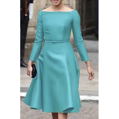 Tubino Colonna Lunghezza Tè Vestito da Festa Abito da Cocktail Abito da invitata a nozze Abito da cerimonia per signora Manica Lunga Collo quadrato Elegante Minimalista Formale Ospite di nozze
