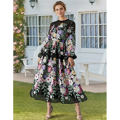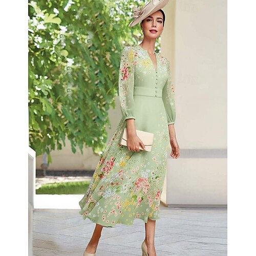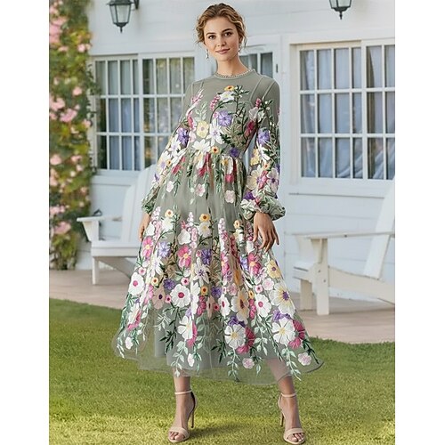 Linea ad A Abito Lunghezza alla caviglia Lunghezza Tè Vestito da Festa Abito da Cocktail Abito da invitata a nozze Abito da cerimonia per signora Manica Lunga Mezza Manica Girocollo Elegante Vintage