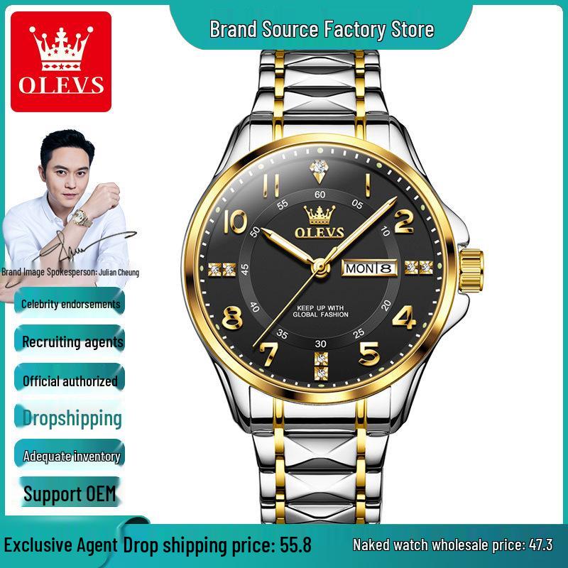 Automatic Movement Quartz Watch Watch Men's Waterproof Luminous Wristwatch Double Calendar Diamonds Leisure Watch