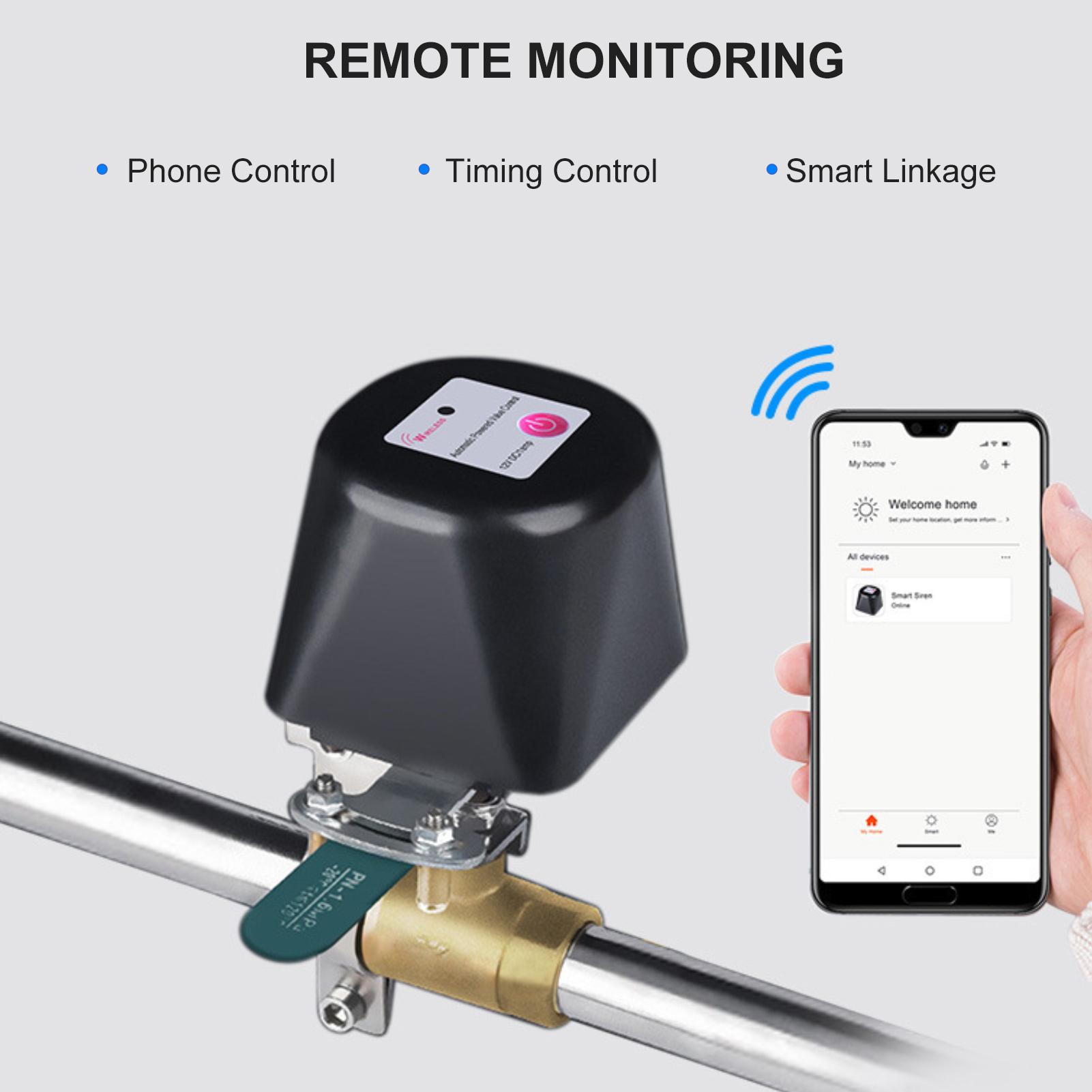 WiFi Smart Vannventil med Timer Vann Automatisk Stengeventil Kontroller Hjemmeautomatisering Vannstengeventil Kompatibel Svart
