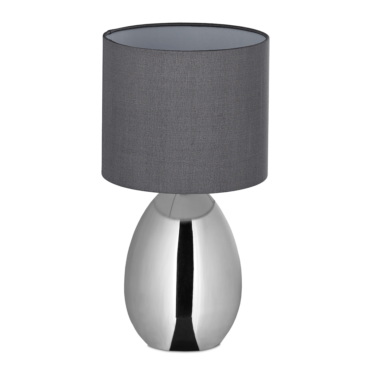 Relaxdays Nachttischlampe mit Touch, moderne Tischleuchte, E14, Tischlampe mit Stoffschirm, HxD 34,5 x 18cm, silber/grau