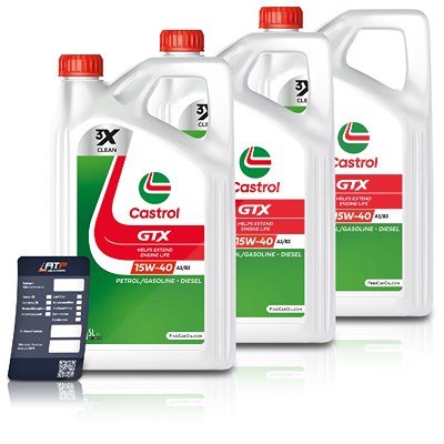 Castrol 15 L GTX 15W-40 A3/B3 + Ölwechsel-Anhänger [Hersteller-Nr. 15F629]
