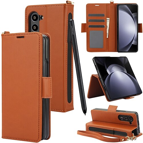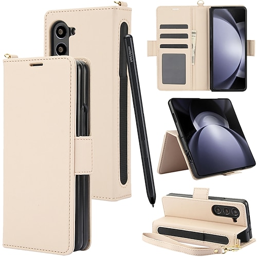 telefono Custodia Per Samsung Galaxy Z Fold 6 Z Fold 5 Z Fold 4 Z Fold 3 Custodia in pelle Cornice antiurto Flip Portamatite Tinta unita PC Pelle PU