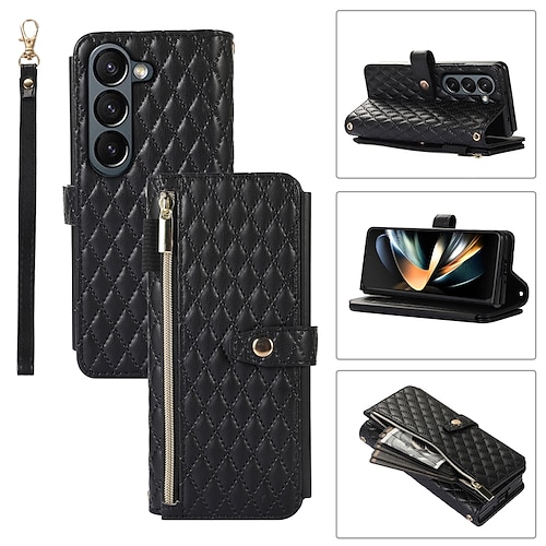 telefono Custodia Per Samsung Galaxy Piegatura a Z 7 Z Fold 6 Z Fold 5 Z Fold 4 Z Fold 3 Custodia Portafoglio Magnetico Cerniera Con Cinturino da Polso Retrò Motivo Geometrico PC Pelle PU
