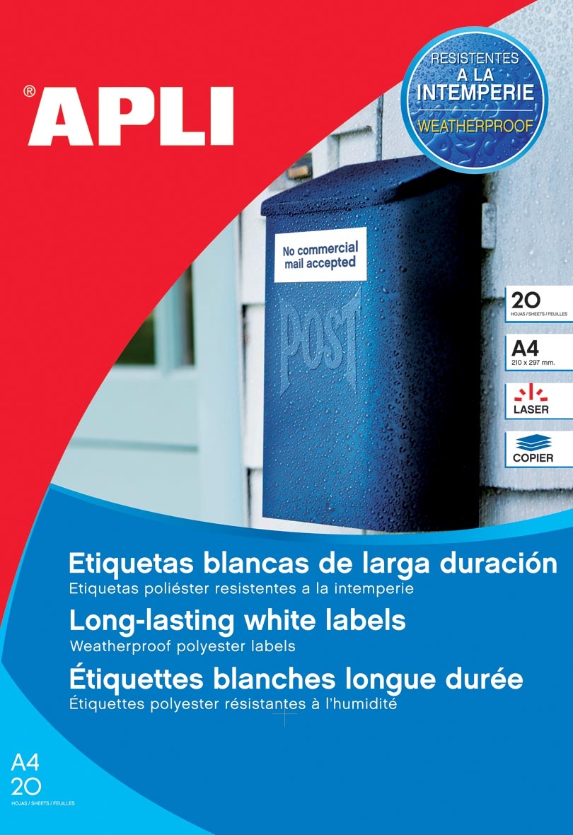Apli agipa Wetterfeste Folien-Etiketten, 210 x 297 mm, weiß