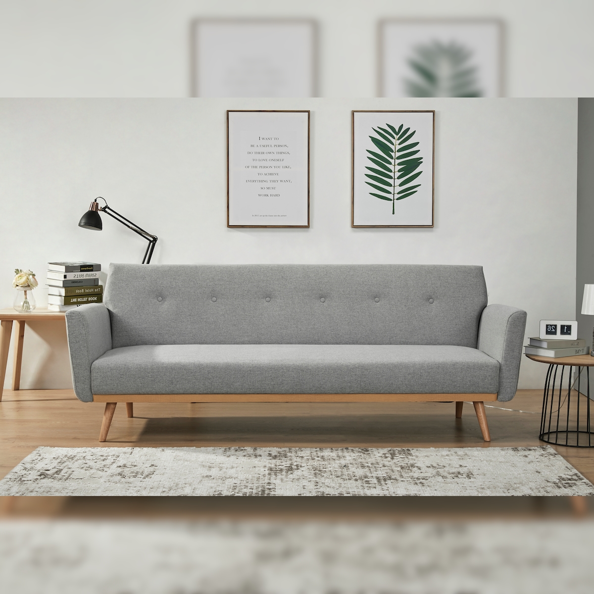 SalesFever Schlafsofa 3-Sitzer | Klappfunktion | Bezug Strukturstoff fein | Beine Holz | B 212 x T 85 x H 79 cm | hellgrau