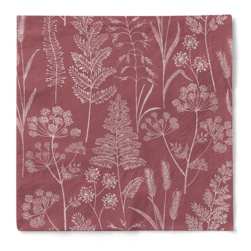 Mank Tissue Serviette Benjamin in Bordeaux, 33 x 33 cm, 3-lagig, 100 Stück - Herbstdesign Gräser Sträucher