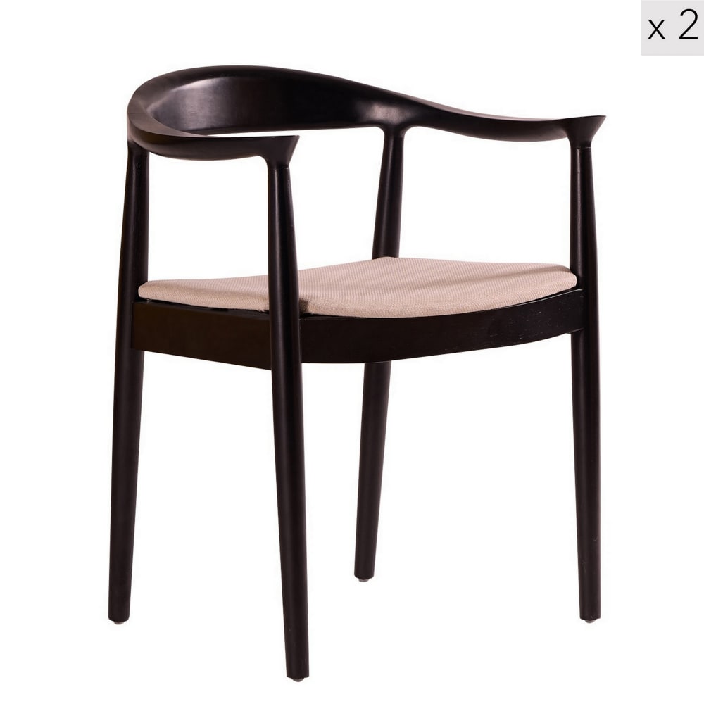 Lot de 2 chaises de salle à manger en bois massif noir et tissu beige