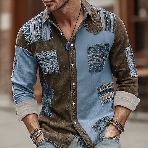 Per uomo Geometrico Blocco di colori Patchwork Camicia Camicia con Bottoni Manica Lunga Vintage Retrò All'aperto Quotidiano Abbigliamento casual alla moda Primavera Autunno Collo ripiegato Stampa 3D