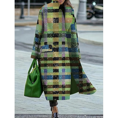 Per donna Cappotto Invernale Cappotto Confortevole Traspirante Tasca Bottoni Stampato Casual Blocco di colori Vacanza Streetwear Casuale Abbigliamento quotidiano Monopetto Lungo Collo ripiegato