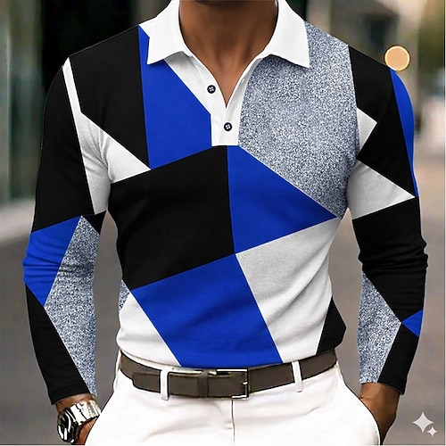 Per uomo Blocco di colori Geometrico Polo Manica Lunga Magliette polo Bavero Business Casual All'aperto Athleisure Abbigliamento quotidiano Stampa 3D Bottoni Primavera Autunno Blu Rosso Viola