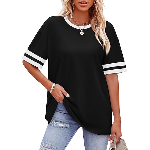 Per donna Maglietta Blocco di colori Casual Manica Corta Girocollo Top Regolari Quotidiano Uscire Weekend Patchwork Blu Nero Bianco Rosa Rosso Estate Primavera