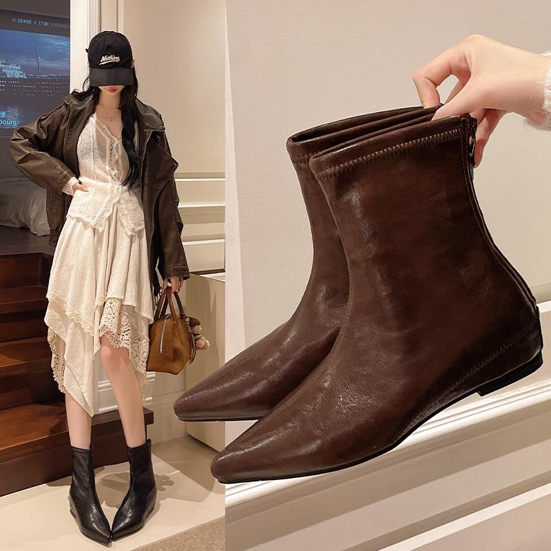 Dames Enkellaarsjes Topkwaliteit Zacht Leer Korte Laarsjes Dames Plat Winter Mode Dames Chelsea Boots Mode Plus Size 41 42 cm