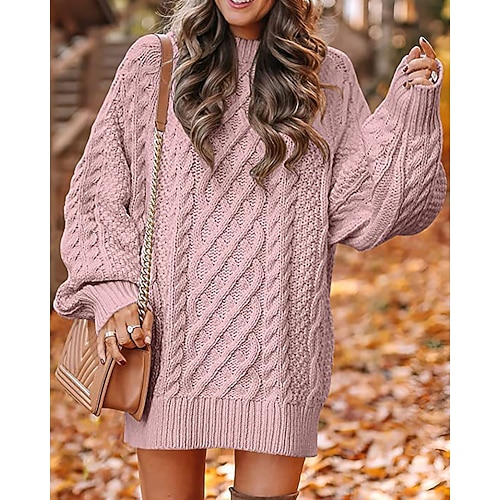 Per donna Mini Abito Abito in maglia Elegante Moda Moderno Quotidiano Uscire Weekend Vestibilità comoda Semplice Manica Lunga Girocollo caramello Bianco Rosa Rosso Autunno Inverno