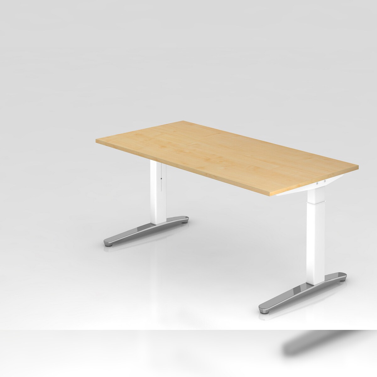 PROREGAL Schreibtisch Mika | Ahorn | Weißes Gestell poliert | BxT 160x80cm | Arbeitshöhe 65-85cm | höhenjustierbar, 1cm Raster | C-Fuß-Gestell