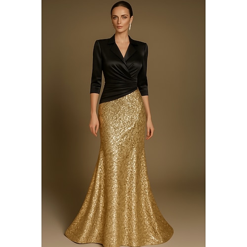 Per donna Da donna Abito da smoking Linea ad A Matrimonio Formale Ospite di nozze Velluto Elegante Vintage Manica Lunga Manica 3/4 plissettata Lunghezza al pavimento Revers dentellati Monopetto