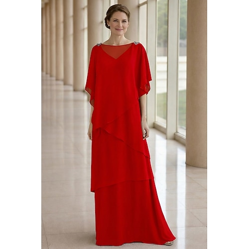 Linea ad A Lunghezza al pavimento Abito da invitata a nozze Abito Formale Abito a Strati Abito da cerimonia per signora Mezza Manica Scollo a Barca Elegante Formale Ospite di nozze Chiffon con Volant