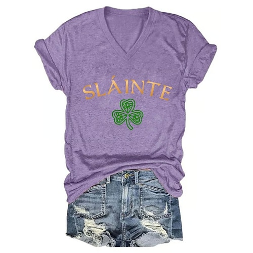maglietta da donna portafortuna per il giorno di San Patrizio, grafica, trifoglio, vintage, elegante, classica, manica corta, scollo a V, top normali, stampa quotidiana, nero, bianco, rosa, viola,