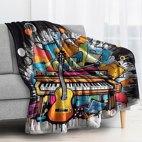 Coperta in pile con motivo musicale in bianco e nero, motivo musicale per tastiera di pianoforte, morbida coperta in pile per divano letto, arredamento per sala musica