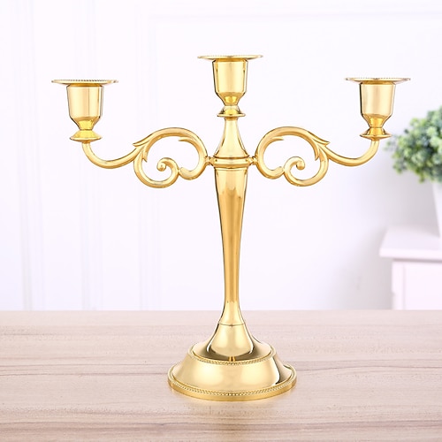 Portacandele vintage in oro, portacandele conico in metallo a 5 bracci per centrotavola, portacandele retrò europeo per decorazioni di nozze, hotel e compleanni