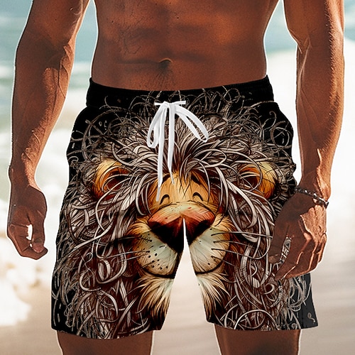 Per uomo Cartoni animati Leone Divertente Costumi da bagno Pantaloncini da mare Pantaloncini da Surf Misura del girovita medio Hawaiano Vacanza al Mare Tasche Laterali fodera in rete Coulisse