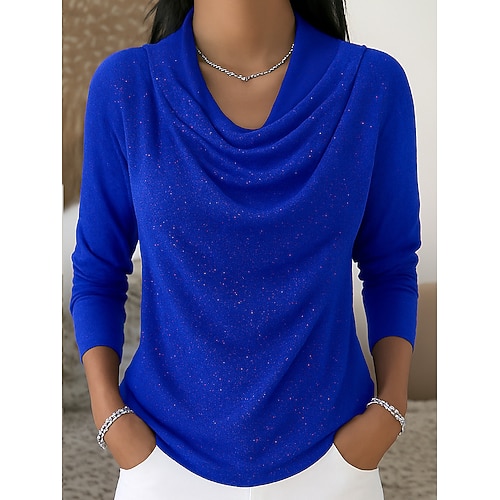 Per donna Blusa Liscio Moda Manica lunga Collo alto Top regolari Per eventi Per uscire Retato Nero Blu marino Estate