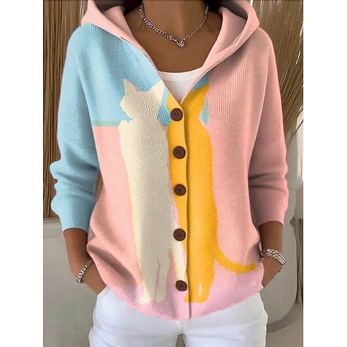 Per donna Felpa Cardigan Vacanza Moda Streetwear Grafico Gradiente di Colore A Coste Con Cappuccio Tasca Lavorato a maglia Stampato Manica Lunga Top Regolari Maglia All'aperto Quotidiano Weekend Rosa