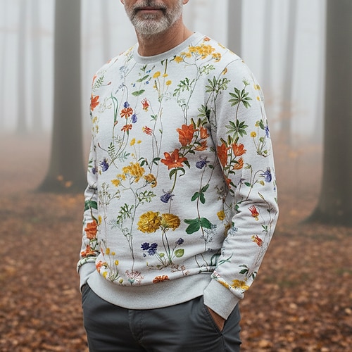 Per uomo Stampa Floreale Fiori / Piante Felpa Felpe Manica Lunga Felpa Girocollo Vintage Retrò Stampa Ferie Uscire Festival Stampato Autunno Inverno