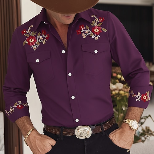 Per uomo Etnico Floreale intricato Fiori Camicia Camicia Western Camicia da cowboy Manica Lunga Vintage Retrò All'aperto Casuale Abbigliamento da lavoro Primavera Autunno Collo ripiegato Due tasche