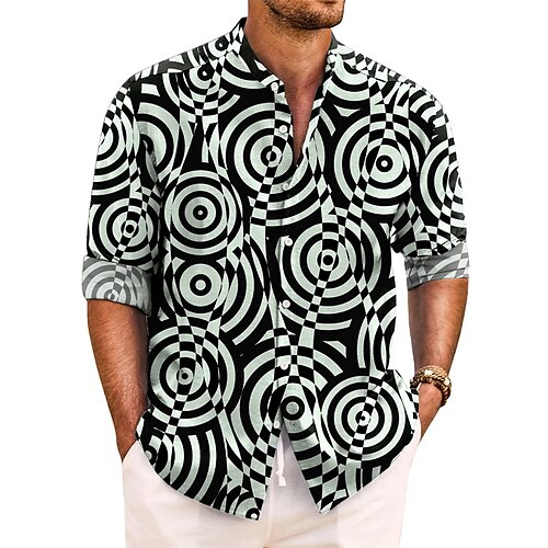 Per uomo Geometrico Cerchio Arte astratta Camicia Camicia con colletto alla coreana Manica Lunga Moda Casual Abbigliamento Quotidiano Ferie Primavera Autunno Collo alla coreana Colletto alla coreana