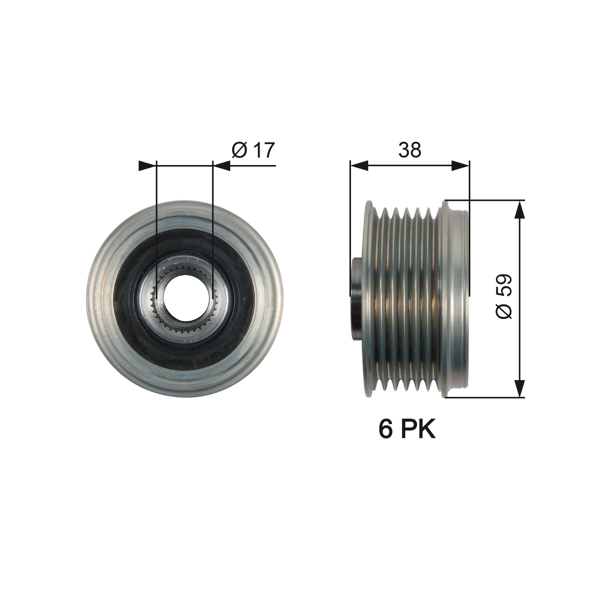 GATES Freilauf Lichtmaschine FIAT,JEEP,ALFA ROMEO OAP7153 51860757,0051860757 Generatorfreilauf,Freilaufriemenscheibe,Freilauf Generator