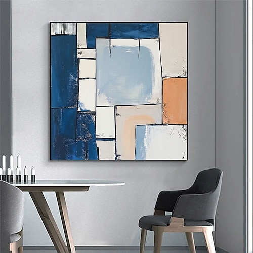 dipinto a olio astratto blu fatto a mano, grande tela testurizzata, arte moderna minimalista, decorazione murale, opera d'arte contemporanea per soggiorno, design per la casa