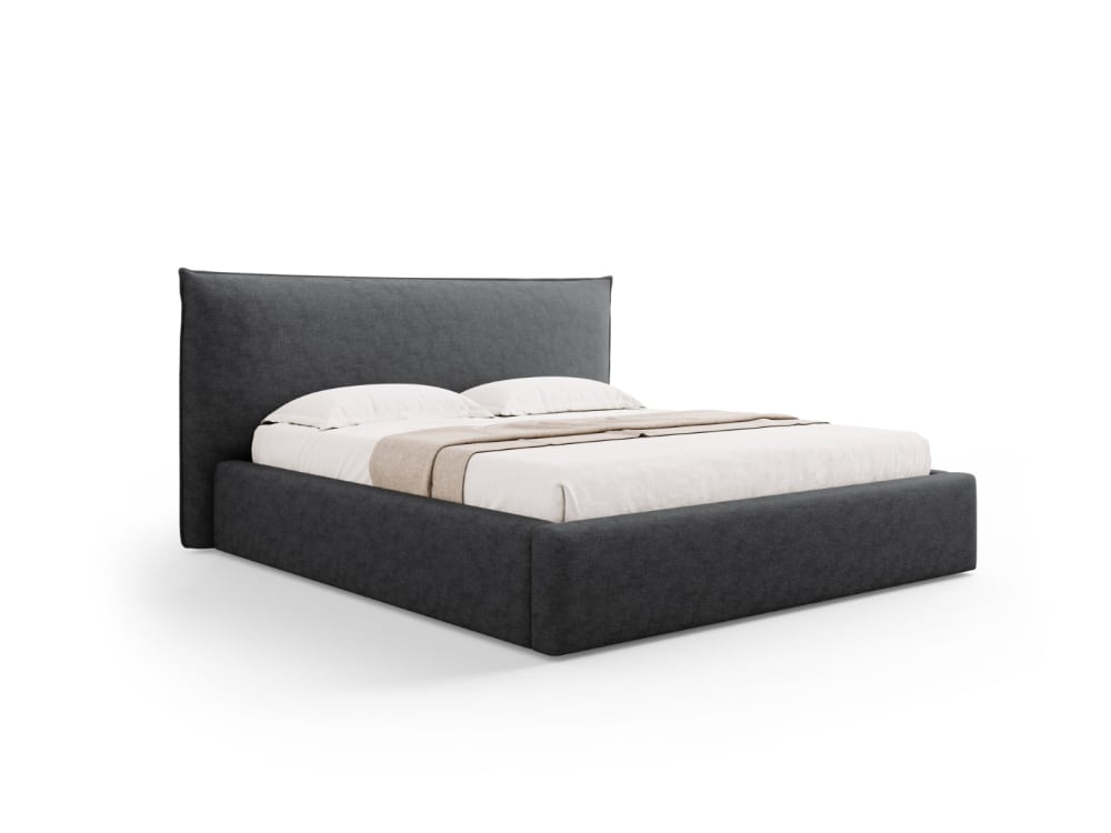 Lit coffre avec tête de lit 160x200cm en tissu chenille gris foncé